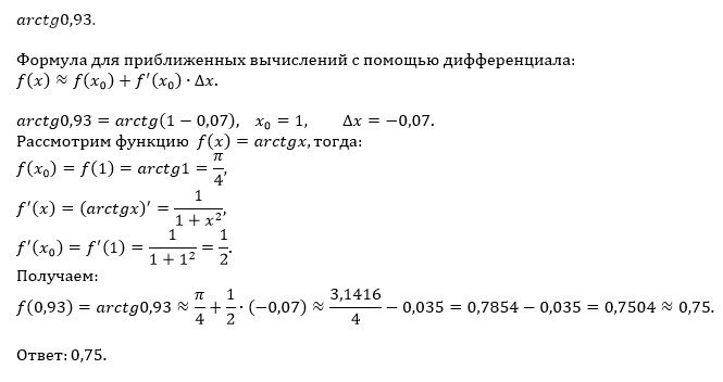 Вычислить приближено с помощью дифференциала: arctg (0,93)