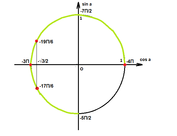 Корни из 2 варианта: x3 = 5π/6 - 4π = -19π/6; x4 = - 5π/6 - 2π = -17π/6