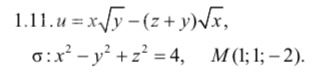 Найти производную скалярного поля u(x;y;z) в точке М по направлению нормали к поверхности δ, образующей острый угол с положительным направлением оси OZ