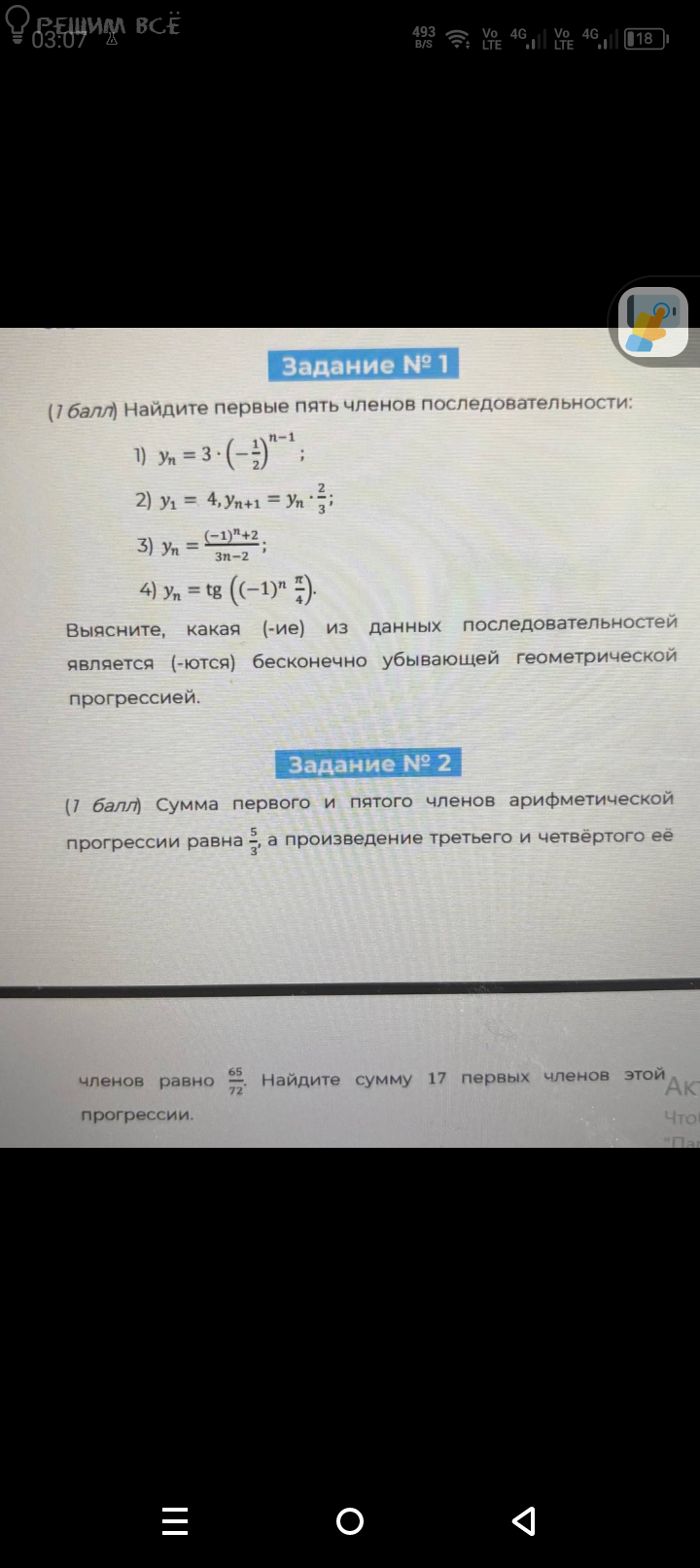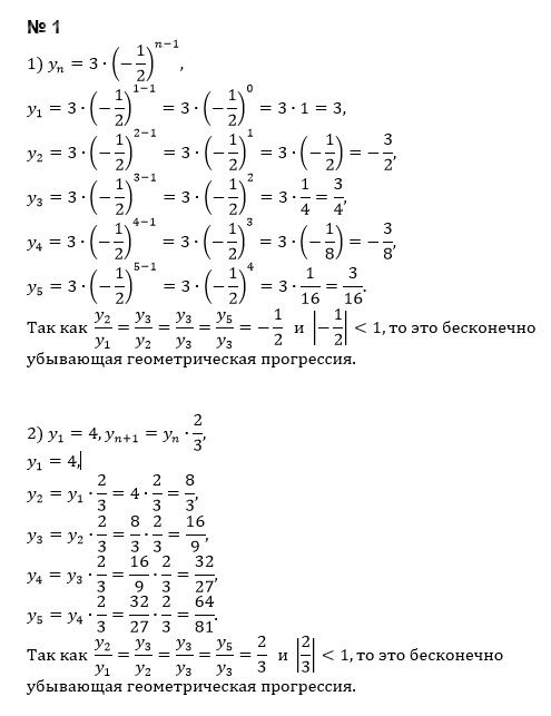 Выясните, какая (-ие) из данных последовательностей является (-ются) бесконечно убывающей геометрической прогрессией.