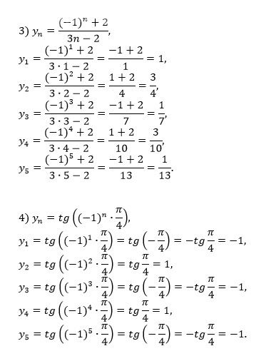 4) yn = tg ((-1)^n * π/4).