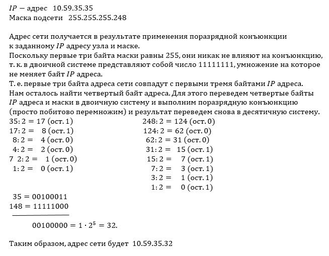 10.59.35.32 — адрес подсети для IP 10.59.35.35 с маской 255.255.255.248.