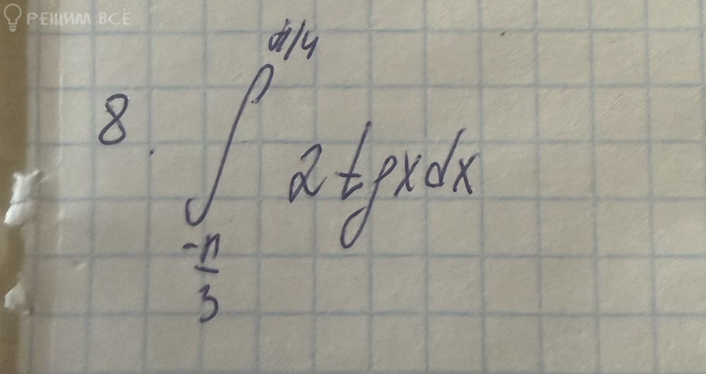 8. ∫[от -π/3 до π/4] 2tgx dx