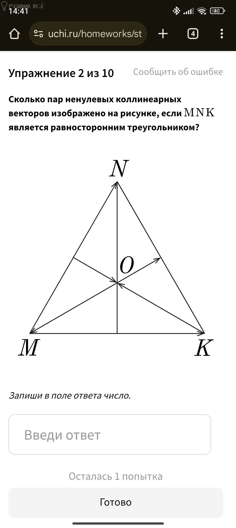 Сколько пар ненулевых коллинеарных векторов изображено на рисунке, если M N K MNK является равносторонним треугольником?