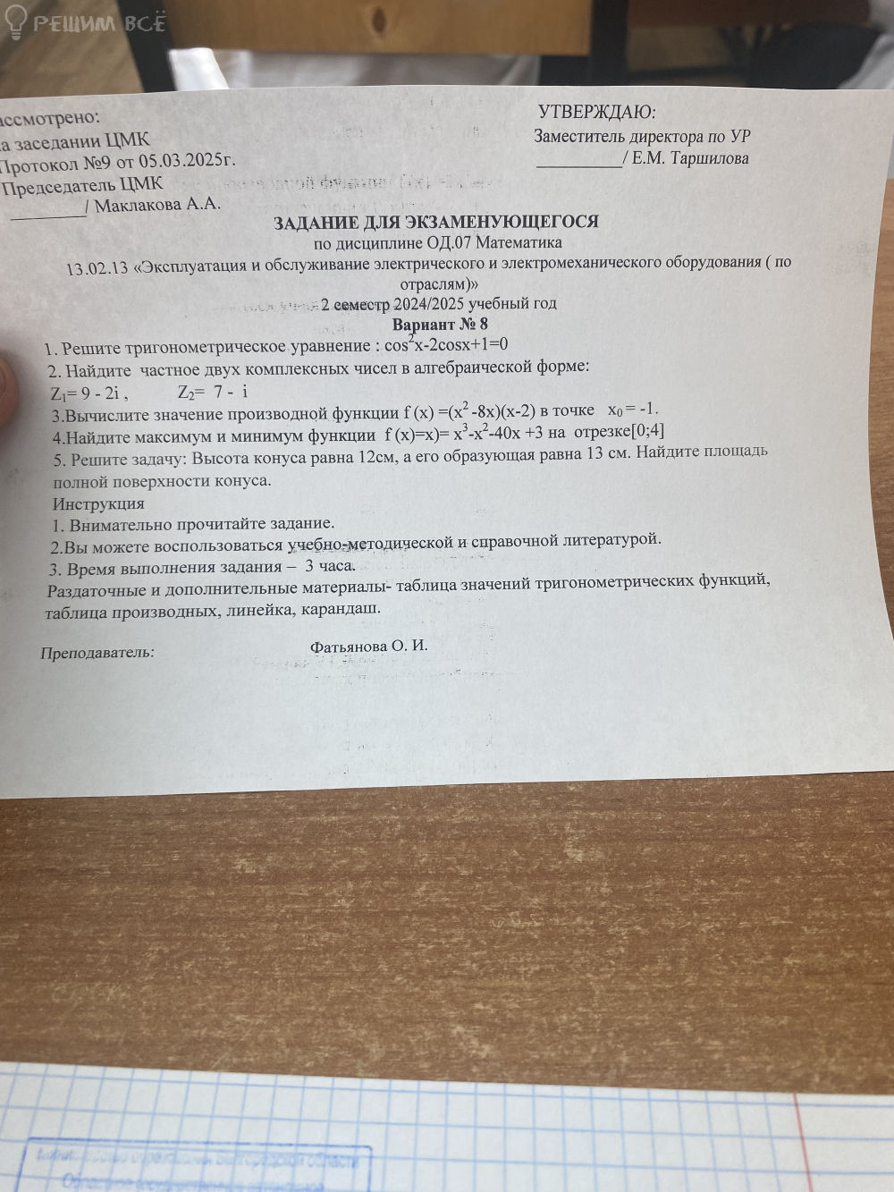 1. Решите тригонометрическое уравнение: cos²x-2cosx+1=0
