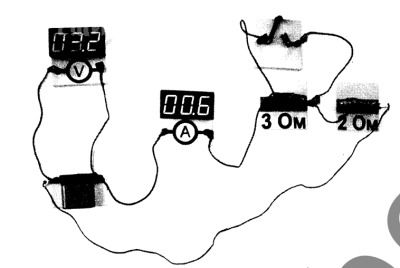 • R1 = 3 Ω и R2 = 2 Ω соединены последовательно.