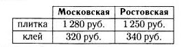 Если покупать ростовскую плитку и соответствующий ей клей, то будет потрачено 1250+340=1590(рублей), что меньше 1700 рублей,что так же удовлетворяет условию.
