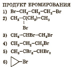 CH₂=CH–CH₃ + Br₂ → CH₂Br–CHBr–CH₃ (1,2-дибропропан) – продукт 3.