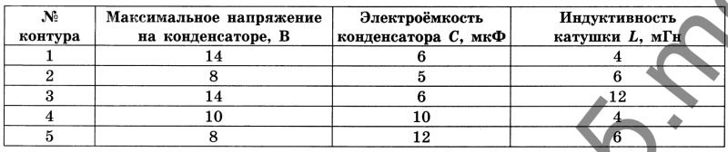 20) Ученик изучает свободные электромагнитные колебания. В его распоряжении имеются пять аналогичных колебательных контуров с различными катушками индуктивности и конденсаторами, характеристики которых указаны в таблице. Какие два колебательных контура необходимо взять ученику для того, чтобы на опыте исследовать зависимость периода свободных колебаний заряда конденсатора от индуктивности катушки?