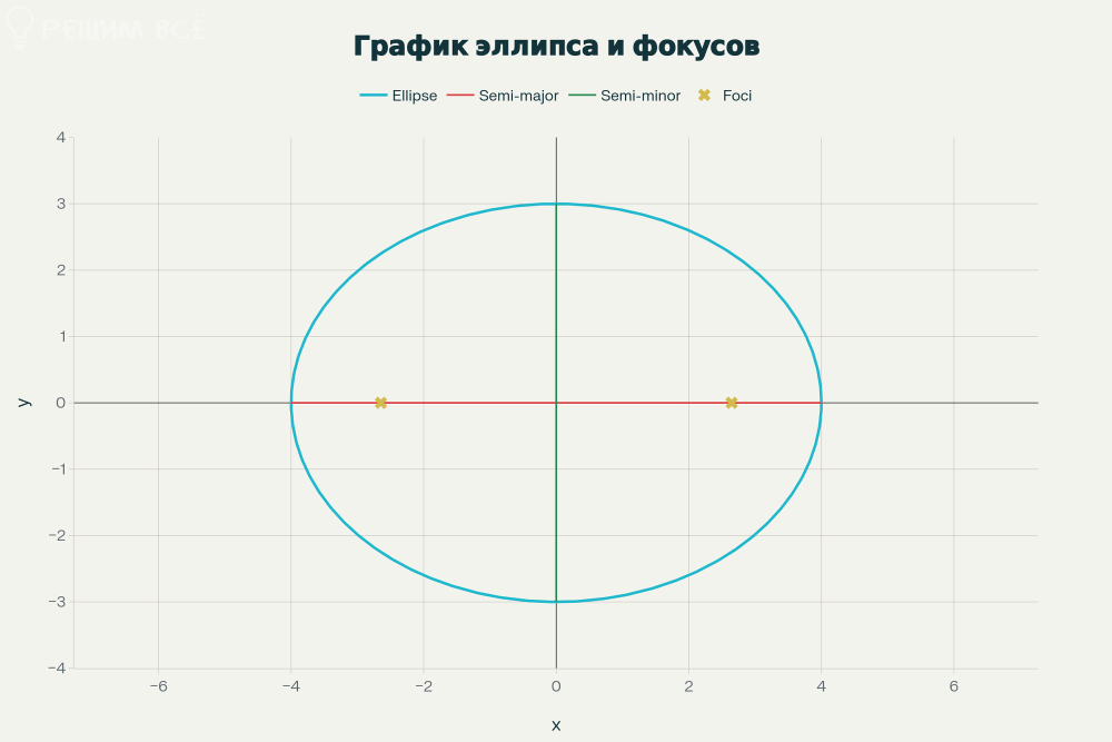 Координаты фокусов: (±c, 0) ⇒ (±2,65; 0)