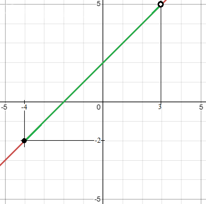 На концах отмечено, что точка (-4; -2) входит в промежуток, а точка (3; 5) выколота, она в промежуток не входит.