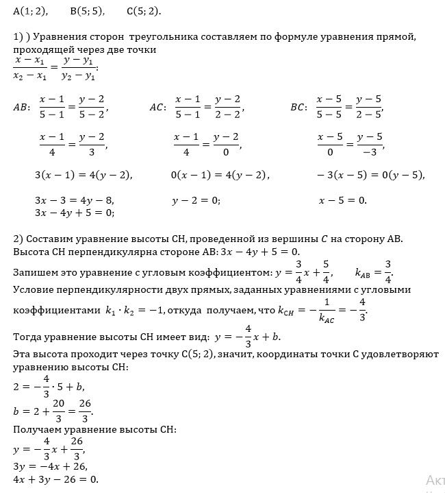 2) уравнение высоты, опущенной из вершины C на сторону AB;