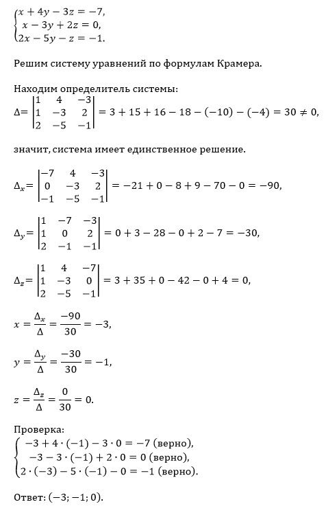Решить методом Крамера, выполнить проверку