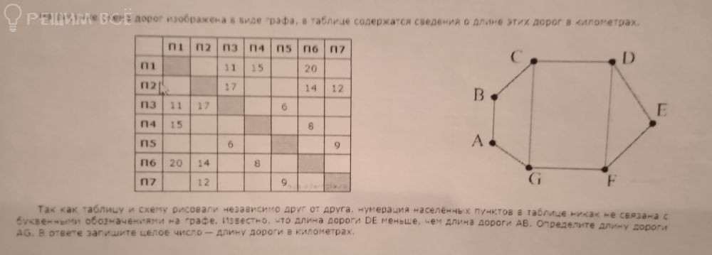 6. Длина дороги AG – это расстояние между пунктами п6 и п1.