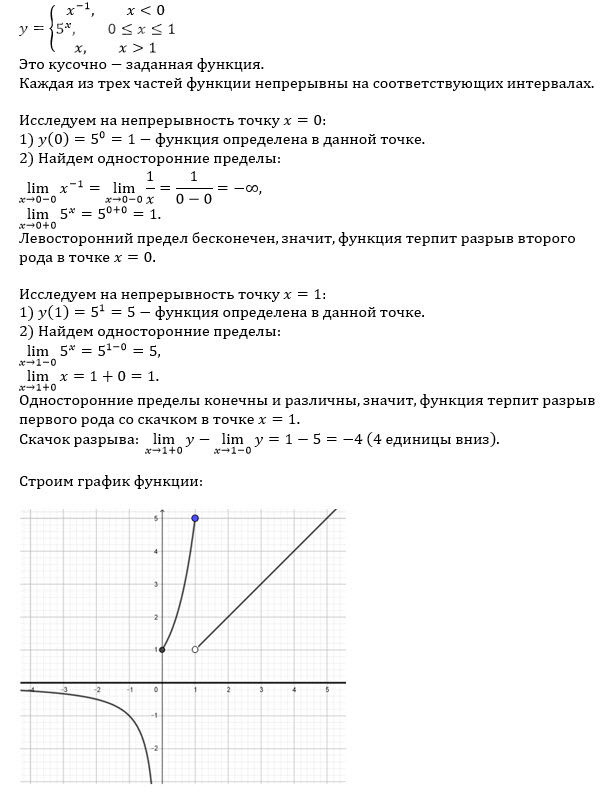 Значит, в точке x = 1 - неустранимый разрыв 1 рода - скачок функции.