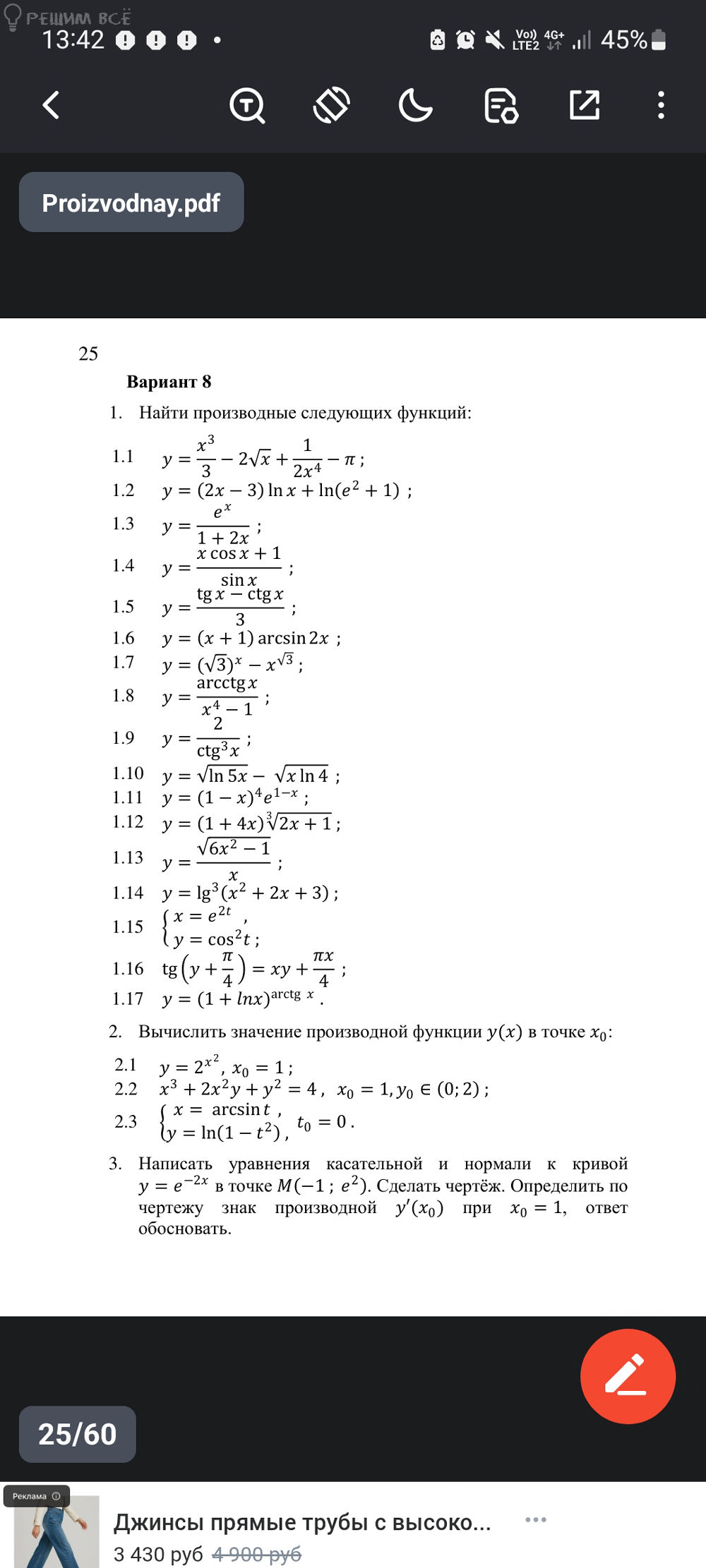 1.16. [m]\large tg\ (y+ \frac{\pi}{4}) = xy + \frac{\pi x}{4}[/m]