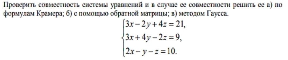 ⎢ 3 4 –2 ⎥ , b = (21, 9, 10)ᵀ
