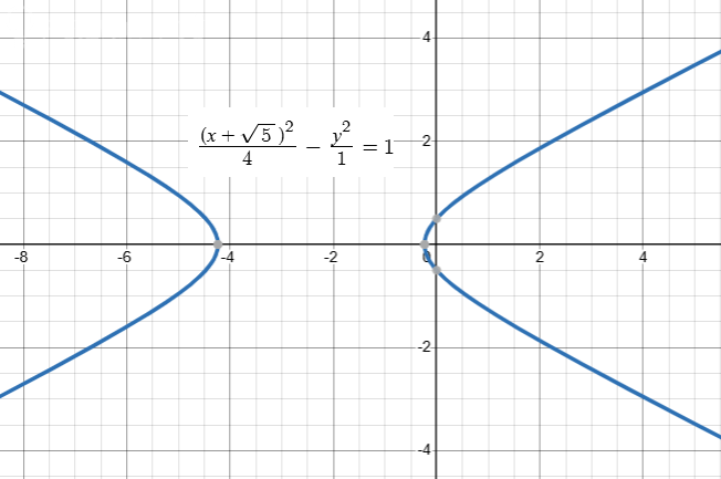 [m]\large \frac{(x + \sqrt{5})^2}{4} - \frac{y^2}{1} = 1[/m]