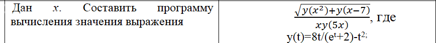 return sqrt(y(x*x) + y(x - 7)) / x / y(5*x);
