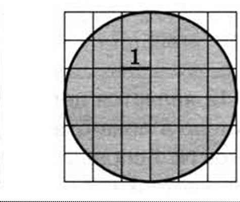 Найдите площадь S круга, изображённого на клетчатой бумаге с размером клетки 1 x 1 (см. рис.). В ответе укажите S/п.