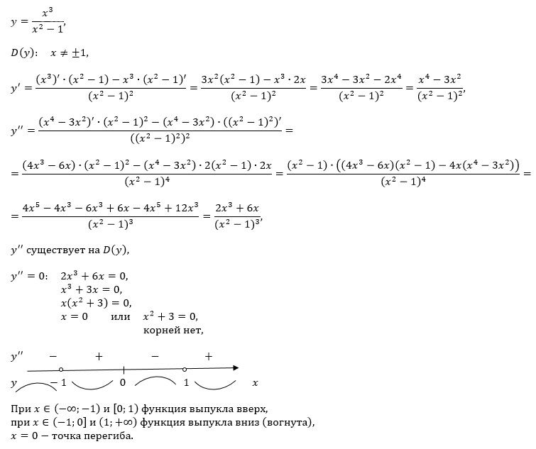 Найти вторую производную, точку перегиба, вогнутую и выгнутую функции y = (x^3)/(x^2-1)