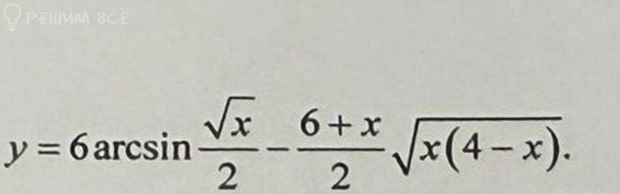2) [m]\large y = 6arcsin\ \frac{\sqrt{x}}{2} - \frac{6 + x}{2} \cdot \sqrt{x(4-x)} = [/m]