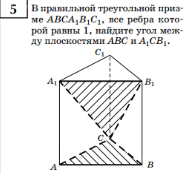 5) Угол между плоскостями равен углу между медианами из С, они же высоты и биссектрисы, треугольников ACB и A1CB1.