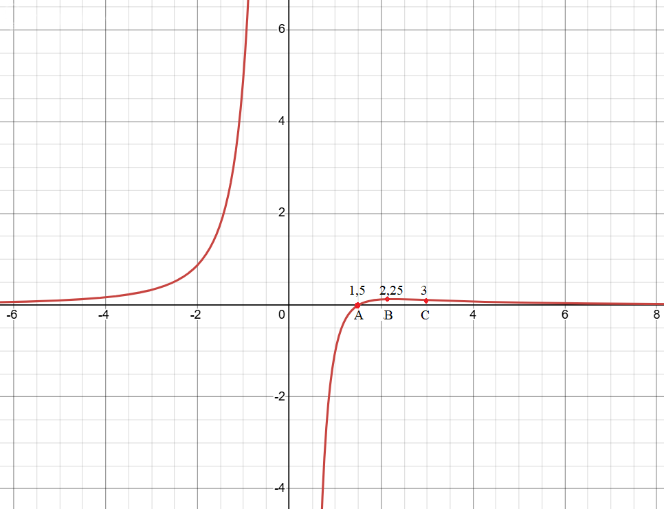 [m]y(\frac{9}{4}) = \frac{2(9/4)-3}{(9/4)^3} = (\frac{9}{2} - 3) : \frac{9^3}{4^3}= \frac{3}{2} : \frac{3^6}{2^6} = \frac{2^5}{3^5} = \frac{32}{243}[/m]