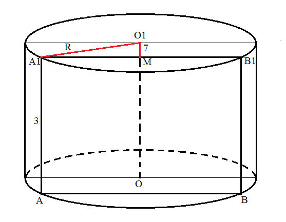 Сечение ABB1A1 находится на расстоянии O1M = 7 см от оси цилиндра OO1.