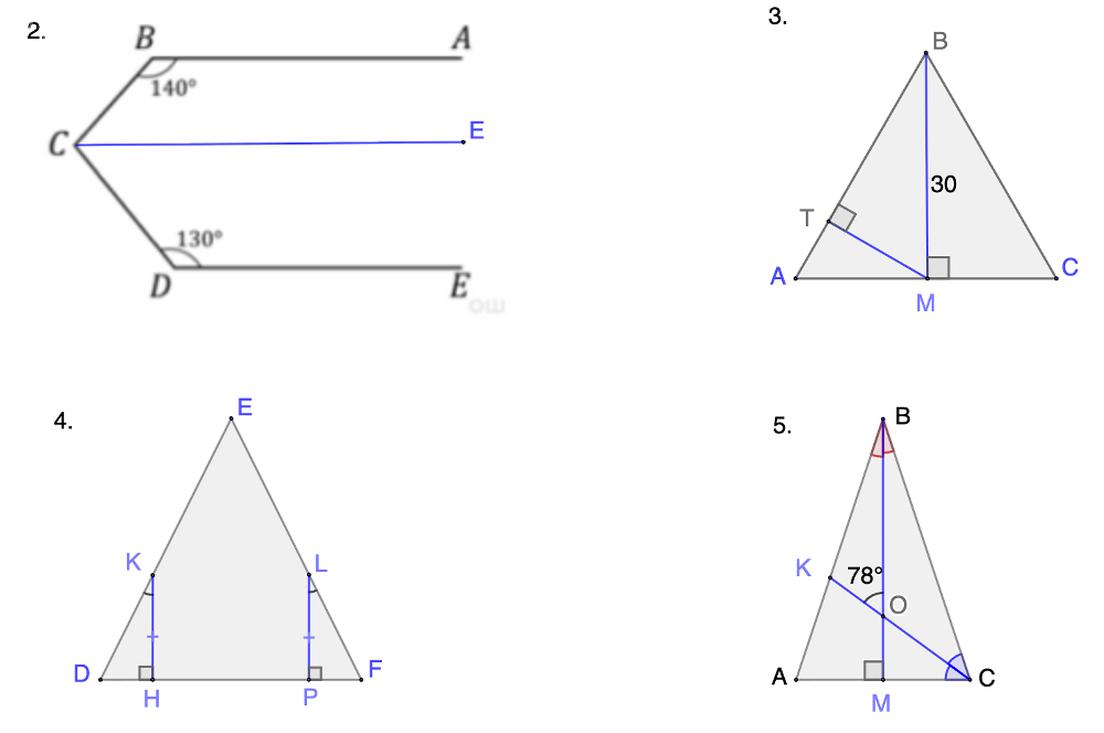 2. (1 балл) На рисунке 2 AB||DE, ∠CBA = 140°, ∠CDE = 130°. Докажите, что BC ⟂ CD.