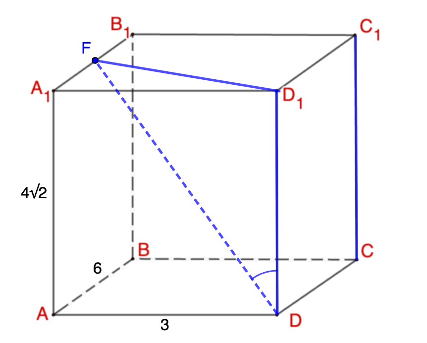 [m]FD1^2=A1F^2+A1D1^2=9+9=18[/m] ⇒ FD1=[m]3\sqrt{2}[/m]