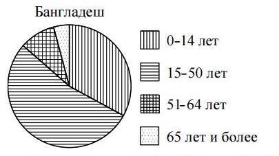 На диаграмме показан возрастной состав населения Бангладеш. Определите по диаграмме, население какого возраста преобладает.