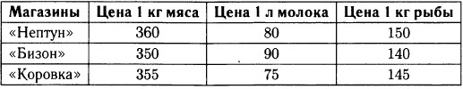 Укажите магазин, где дешевле всего обойдётся набор продуктов из 4 кг мяса, 6 л молока и 2 кг рыбы.