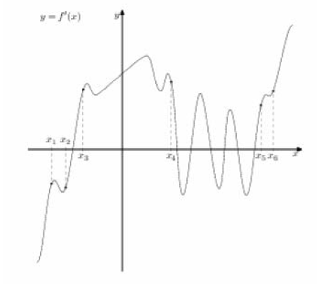 На рисунке изображён график y = f'(х) производной функции f(х) и шесть точек на оси абсцисс: х1, х2,..., х6. В скольких из этих точек функция f (х) возрастает?