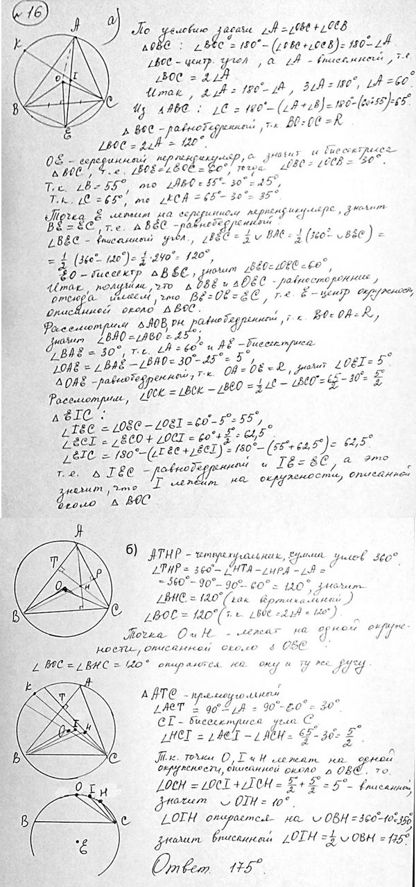 б) Найдите угол OIH, если угол ABC = 55 градусов