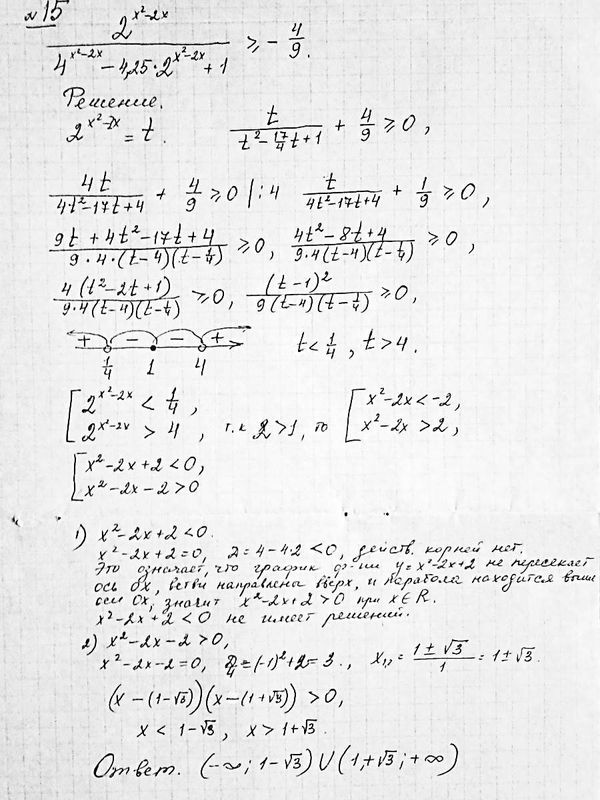 Решите неравенство (2^(x^2-2x))/(4^(x^2-2x)-4,25*2^(x^2-2x)+1) больше или равно -4/9