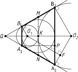 ΔA1QB1 и ΔA2QB2-равнобедренные