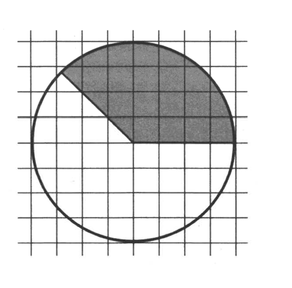 На клетчатой бумаге нарисован круг, площадь которого равна 56. Найдите площадь заштрихованной фигуры.