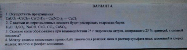 2. С какими из перечисленных вещества будет реагировать гидроксид бария