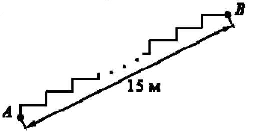 Лестница соединяет точки A и B. Высота каждой ступени равна 14 см, а длина — 48 см. Расстояние между точками A и B составляет 15 м. Найдите высоту, на которую поднимается лестница (в метрах).