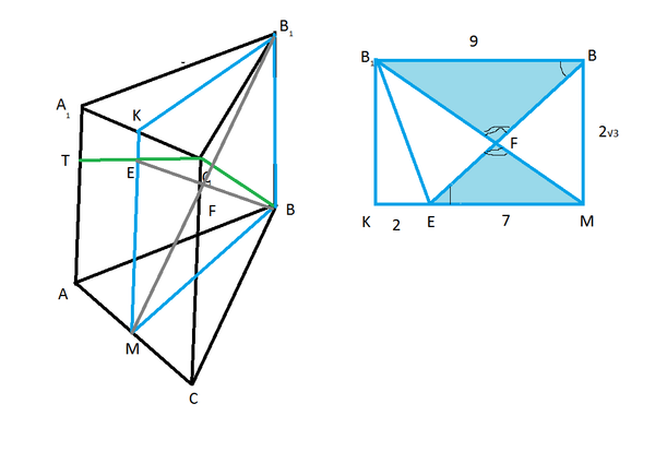 б) см. рисунок трапеции В₁ВМЕ ( рядом с призмой).