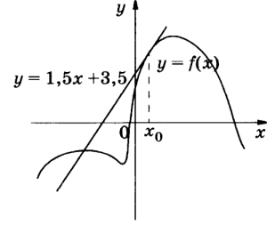 Вспомним, что f′(х0) равно коэффициенту при х в уравнении касательной у = 1,5х + 3,5 к графику функции f(x) в точке х0.