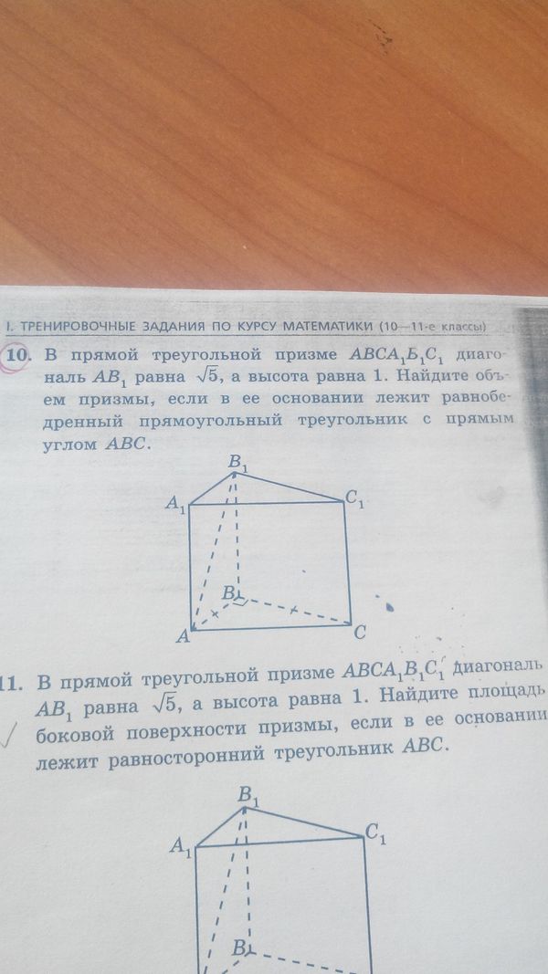 В прямой треугольной призме ABCA1B1C1 диагональ AB1 равна корень из 5 а высота 1 найдите площадь боковой поверхности призмы, если в ее основании лежит равносторонний треугольник ABC