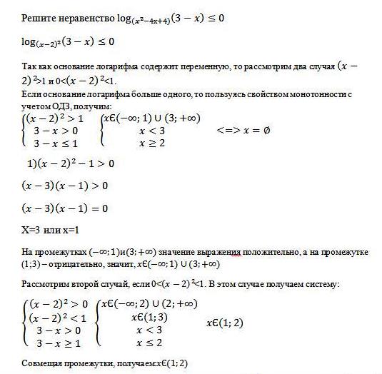 Решите неравенство log((x^2-4x+4))(3-x) ≤ 0