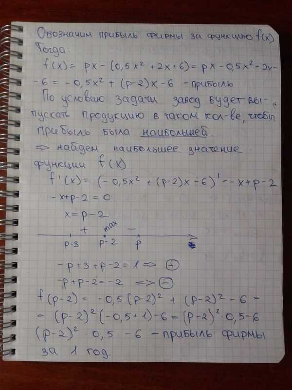 3•( рх-(0,5х²+2х+6)).Так как за это время должно окупиться строительство нового цеха, то эта прибыль должна быть не менее 78млн. руб.