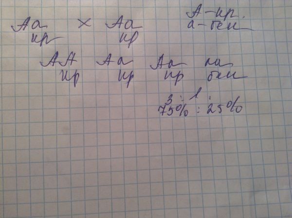 Определите соотношение фенотипов гибридов F1 при самоопылении гетерозиготной особи гороха посевного с красными цветками (красный цвет доминирует над белым). 1) 100% красных 2) 25% красных, 75% белых 3) 50% красных, 50% белых 4) 75% красных, 25% белых