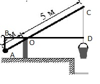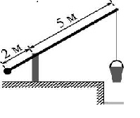 На рисунке изображён колодец с «журавлём». Короткое плечо имеет длину 2 м, а длинное плечо — 5 м. На сколько метров опустится конец длинного плеча, когда конец короткого поднимется на 1 м?