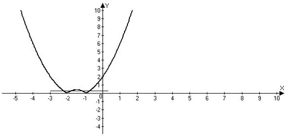 По графику мы видим, что график данной функции с прямой, параллельной оси абсцисс может иметь 4 общие точки.