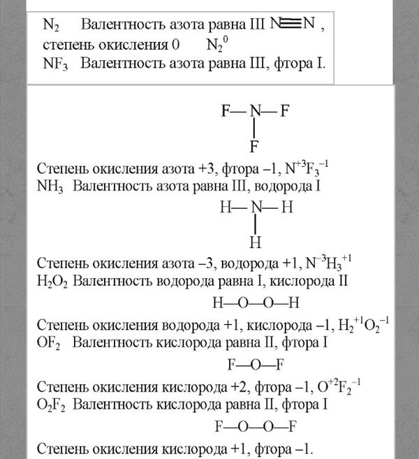 3) Чему равна валентность по кислороду, водороду атомов элементов
