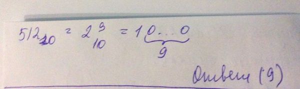 Сколько значащих нулей в двоичной записи десятичного числа 512?